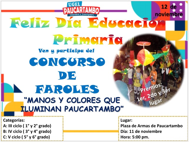 DIA DE LA EDUCACIÓN PRIMARIA – CONCURSO DE FAROLES Nov 1, 2025 UGEL PAUCARTAMBO 508 Views Share on Facebook Twitter Linkedin Pinterest